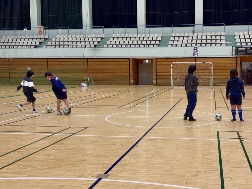 これは別の日に体験してもらいました。では、それをサッカーのキックにどのように生かしていきましょうか?